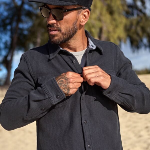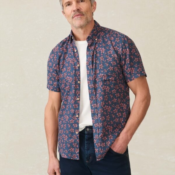 Short-Sleeve Palma Linen Shirt – Washed Black Basketweave