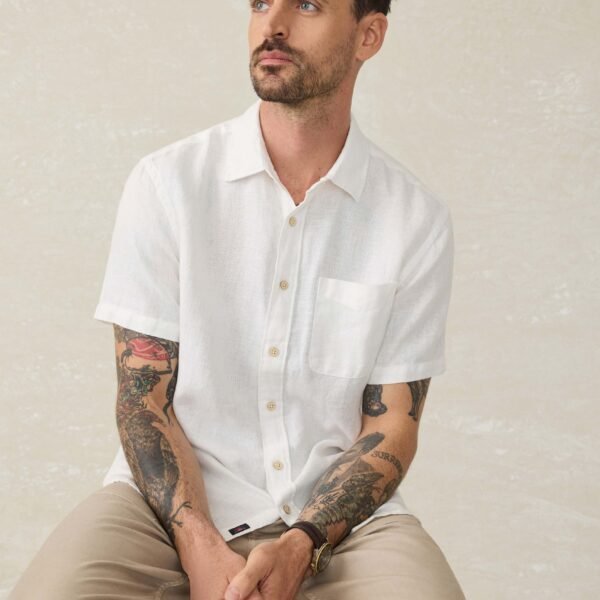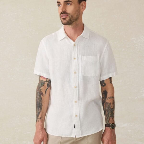 Short-Sleeve Palma Linen Shirt – Bright White Basketweave
